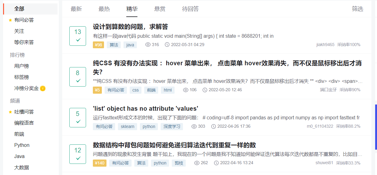针对已采纳回答的问题,基于问题质量和回答质量等指标重新调整了精华内容的规则,精华内容会在精华列表进行展示,同时精华问题的详情页会展示精华标记,如果有不好的问题被选为精华,欢迎大家反馈,我们会第一时间调整。