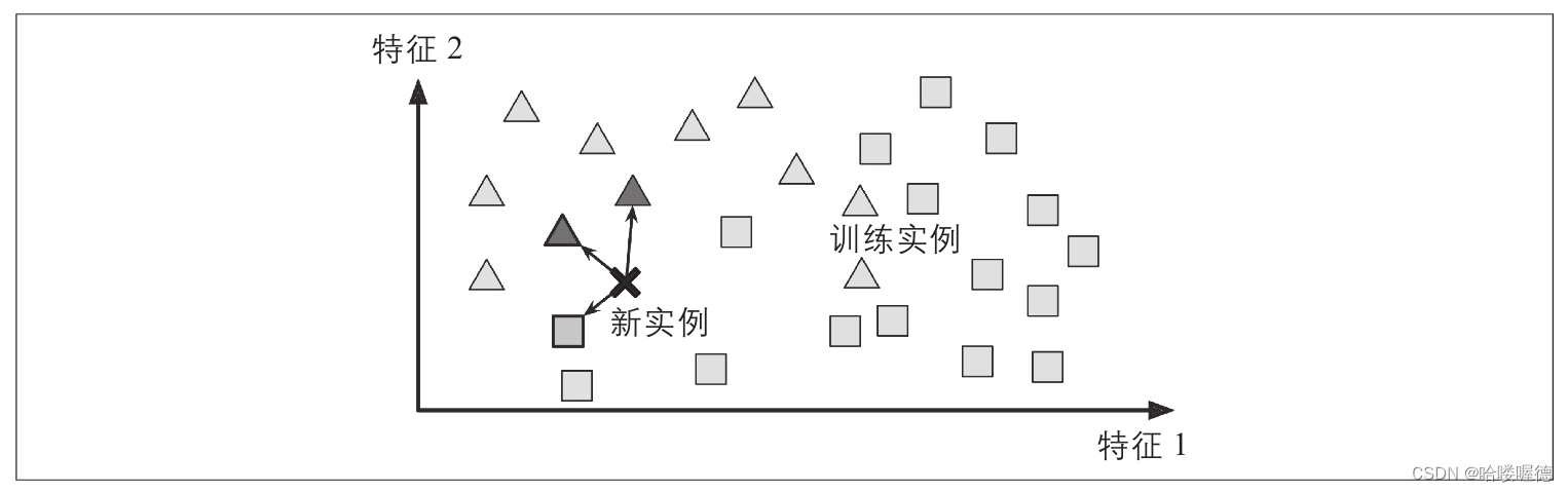 从一组示例集中实现泛化的另一种方法就是构建这些示例的模型,然后使用该模型进行预测。