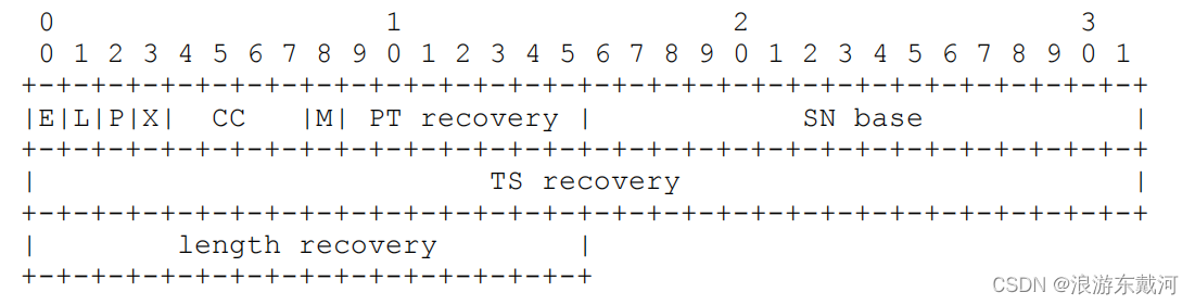 length recovery field:长度恢复域:用来决定恢复包的长度,原理是通过异或,比如两个媒体包的长度分别为3(011)和5(101),长度恢复域则为011 xor 101 = 110