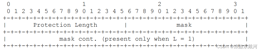 FEC等级头是4个或8个8位组(依赖于FEC头的L位),由保护长度域和掩码域组成。保护长度域是16位长度,掩码域是16位长度或48位长度(当L位设置时)