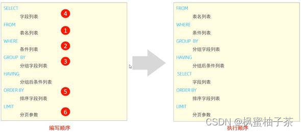 综上所述,我们可以看到DQL语句的执行顺序为: from ... where ... group by ...