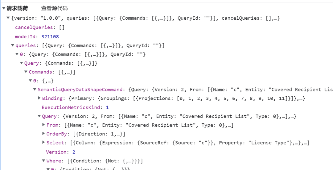 请求数据的网址:https://wabi-us-gov-virginia-api.analysis.usgovcloudapi.net/public/reports/querydata?synchronous=true