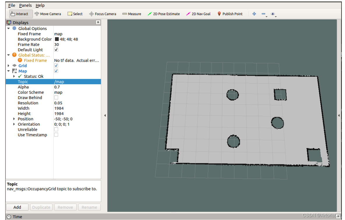 然后在终端打开一个rviz ,add添加地图(map),选取话题即可