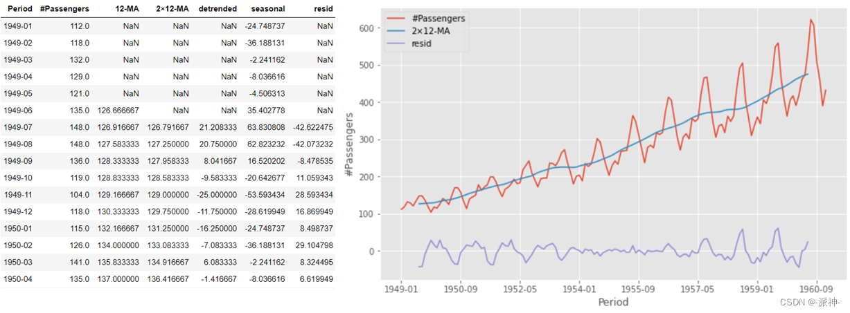 - y=['#Passengers','2×12-MA','seasonal'],