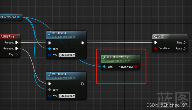 15.在第一人称蓝图中 添加如下节点,让按下鼠标左键时能够与3D UI 进行互动