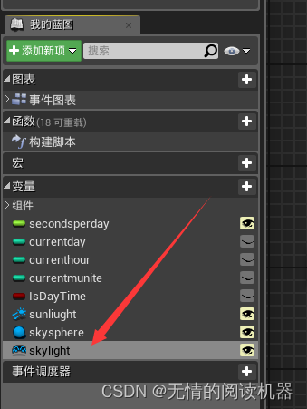 再添加一个变量,命名为skysphere,类型为BPskysphere引用,并设为public