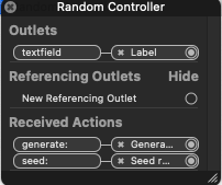 Xcode下的自定义类 (通过new file-> cocoa class创建,保持和书中名字一样RandomController),自定义的fields也加上。