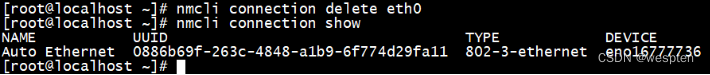 修改DEVICE和Name还有文件名与ip addr中的网卡名一致,不行需要将Device注释掉: