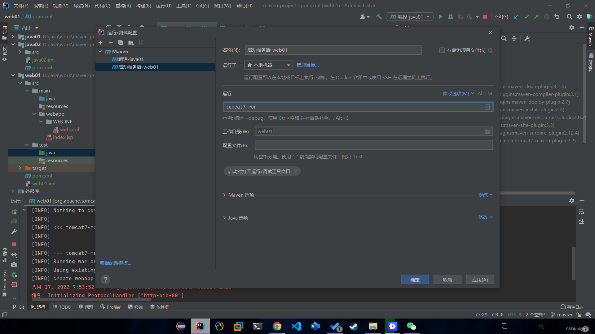 手动与使用骨架创建Maven工程idea版及tomcat插件安装与web工程启动