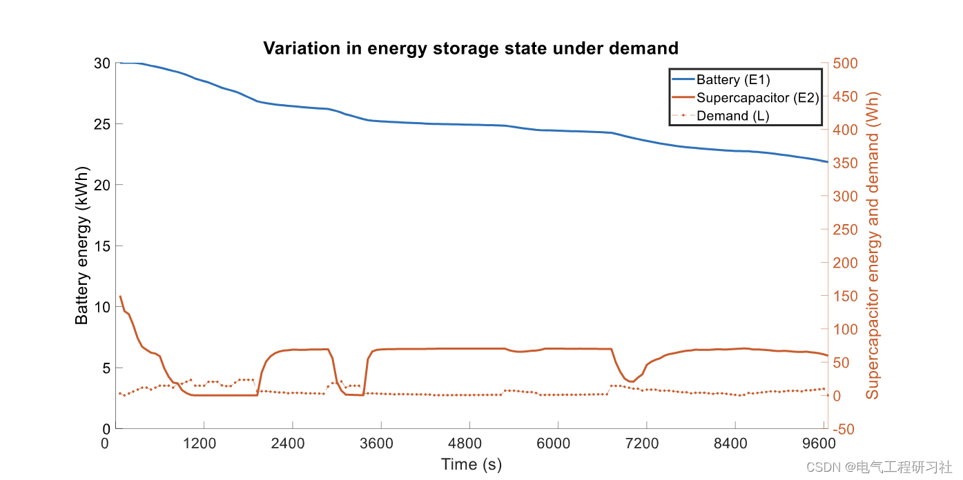 电池寿命是电动汽车 (EV) 运行中的一个重要考虑因素。老化的电池会经历能量容量下降 [1],这会减少一次充电可行驶的最大距离。在车辆到电网的应用中,它还减少了电池 [2] 可以提供的有用服务,因为容量降低的电池能够存储更少的能量。鉴于电池是昂贵的组件,因此必须将退化的巨大财务成本降至最低。结合不同特性的存储可以提高电动汽车的性能和寿命。如果以大能量传输运行,电池会退化,而超级电容器具有高功率密度但能量容量低 [3,4]。这意味着超级电容器和电池一起可以处理来自加速和再生制动的大功率传输,同时保护电池免于退化 [4]。这样的系统被称为混合能量存储系统(HESS)。以前的许多工作已经解决了控制 HESS 的问题——也就是说,确定电池和超级电容器的能量放电,以满足一系列车辆能量需求,同时最大限度地降低上述成本。例如,[3,7] 提出了限制电池退化的启发式规则方法,不使用需求预测来考虑长期成本,而 [5,6] 使用次优贪婪和 MPC 进行预测但解决优化问题技巧。为了优化,动态规划 (DP) 先前已在此上下文中应用以确定策略,即状态反馈控制函数。例如,参考文献 [8] 和 [9] 都通过无限视界 DP 解决了双存储问题,但没有解决 DP 固有的维度灾难。