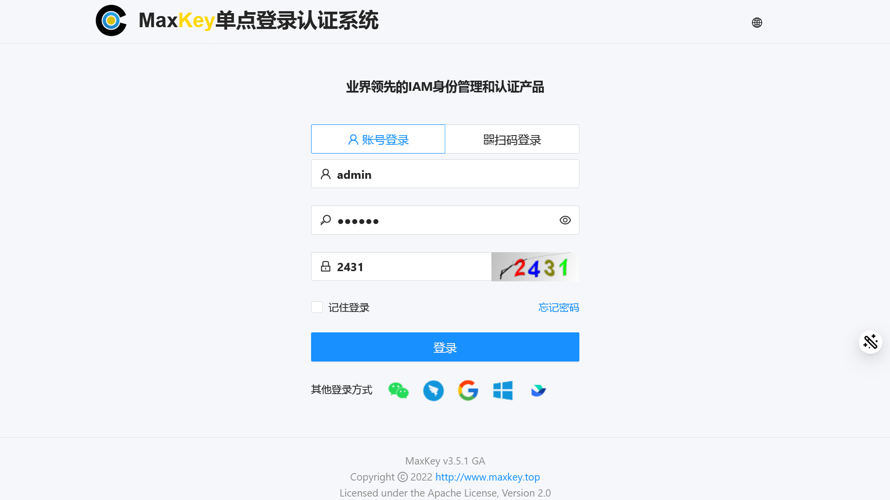 MaxKey单点登录认证系统,谐音马克思的钥匙寓意是最大钥匙,是业界领先的IAM身份管理和认证产品,支持OAuth 2.x/OpenID Connect、SAML 2.0、JWT、CAS、SCIM等标准协议,提供安全、标准和开放的用户身份管理(IDM)、身份认证(AM)、单点登录(SSO)、RBAC权限管理和资源管理等。