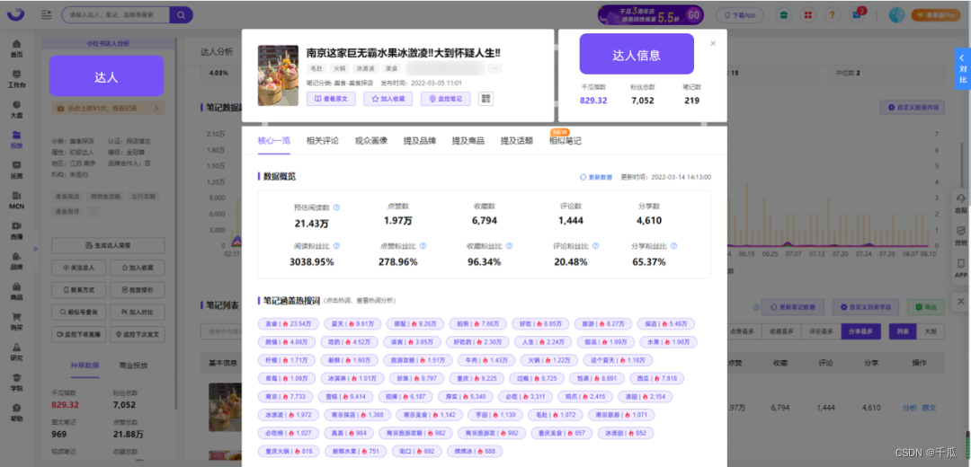 查看资料发现该达人所处地区正是南京,由此可见,除了经典的“垂类达人+内容”的组合,“地区达人+内容”的组合,也能获得不错的效果。