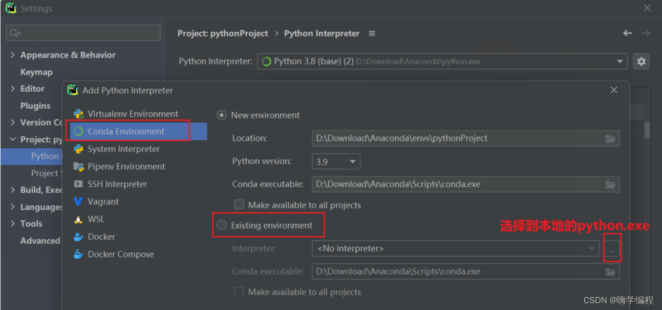 第二个是选择你安装的环境,从它里面调用已经安装的模块。