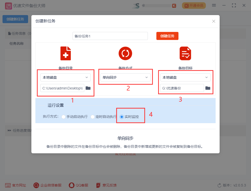 步骤3,点击【创建任务】红色按钮,创建好任务后会回到软件主界面,就能看到刚刚自己创建的备份任务了。