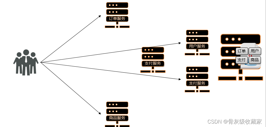 分布式架构:根据业务功能对系统进行拆分,每个业务模块作为独立项目开发,称为一个服务。