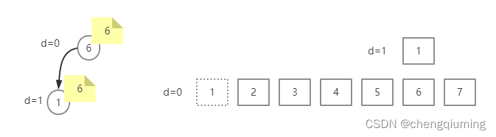C1:查询 1 下面有多少个方块。首先查询 1 的集合号,找祖宗,在查询过程中将当前节点 的 d 值加上其父节点的 d 值,d[1]=d[1]+d[6]=1。