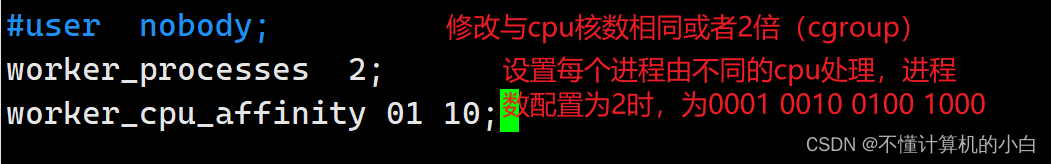 即假设此时有两个进程,则将此两个进程均分给两个内核使用,分别为01,10
