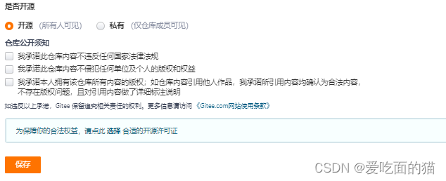 默认是私有的仓储,创建完点击管理,再修改为公开。
