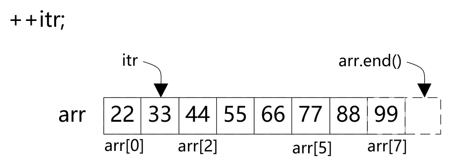 ++itr表示迭代器自增操作,迭代器指向下一个元素