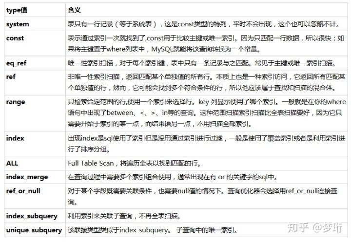 system > const > eq_ref > ref > fulltext > ref_or_null > index_merge > unique_subquery > index_subquery > range > index > ALL