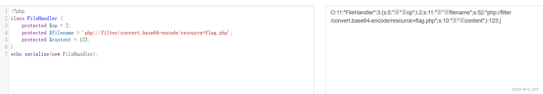 - public $filename = 'php://filter/convert.base64-encode/resource=flag.php';