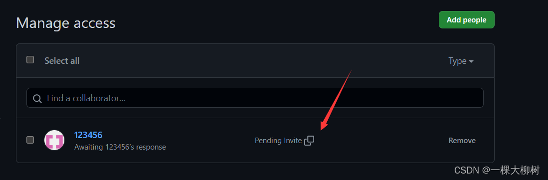 过程中有一个请求发送,只有是一个团队才能推送代码,我们需要将他拉入到团队中,才能够成功push