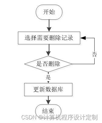 管理员可以对信息等进行信息的删除,对要删除的信息进行选中后,点击删除按钮,系统会询问是否确定,若点击确定,则系统会删除掉选中的信息,并在数据库内对信息进行删除,删除信息流程图如图3-6所示。