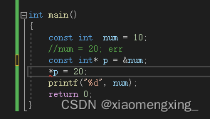 我们会发现程序开始报错了 因为这个时候的num已经具有了常属性