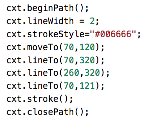 l 定好起始点后,再使用lineTo(x,y)方法绘制到达的终站位置。