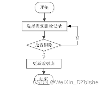 用户选择要删除的信息并单击Delete按钮。系统提示是否删除信息。如果用户想要删除信息,系统将删除信息。系统数据库删除信息。删除信息流程图如图3-5所示。