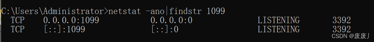 第一步:Win+R 打开命令提示符,输入netstat -ano|findstr 端口号 找到占用端口的进程