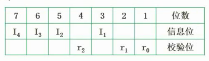 ,得出k=3,校验码放在第1、2、4位,一共7位