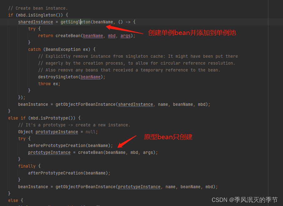 7. 根据合并后的beanDefinition的作用域来真正创建bean对象。