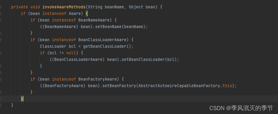 7.1 Aware回调,如果bean实现了Aware或其子接口,则会进行Aware的回调。