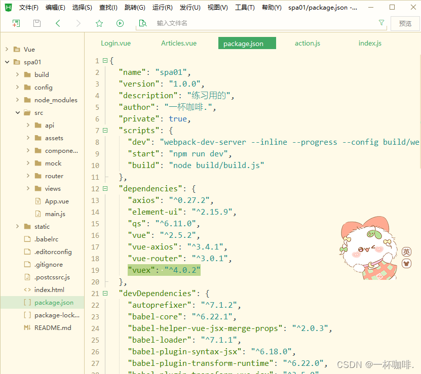 下载之后【package.json】 里会出现vuex