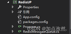 4.1先创建一个控制台FramWork项目RedisOne(命名随意)>NuGet包下载ServiceStack.Redis>添加RedisMessgaeQueue(Redis连接帮助类)>这个类代码在上面