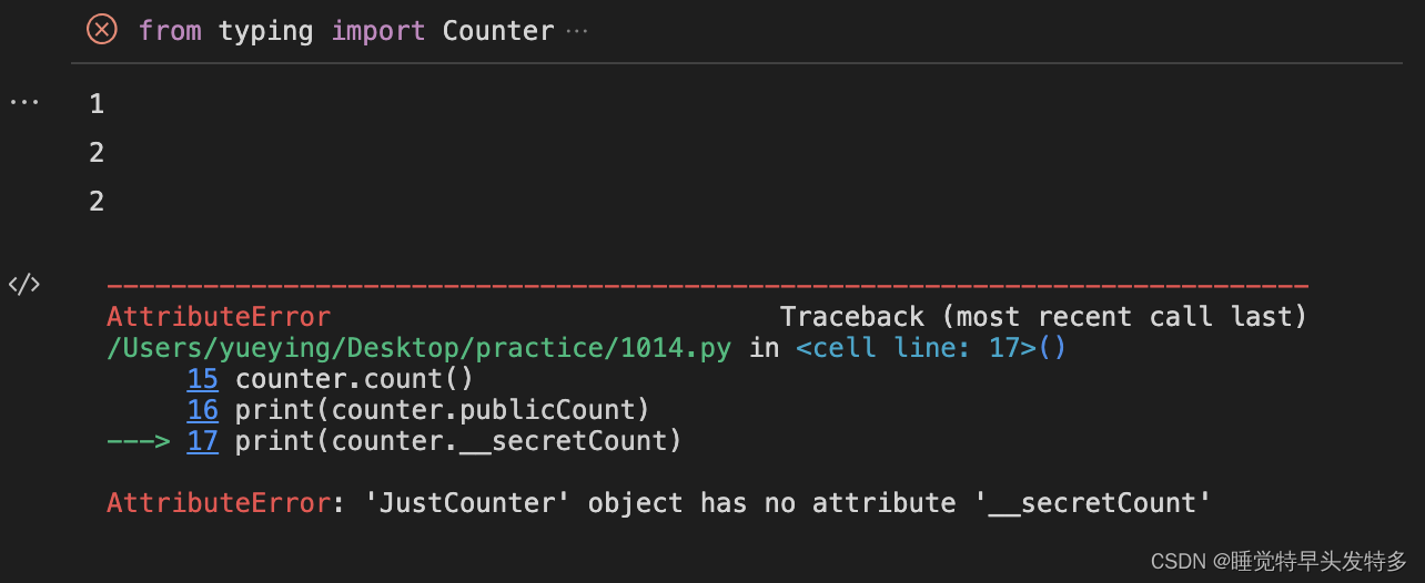 - print(counter.__secretCount) #报错,实例不能访问私有变量