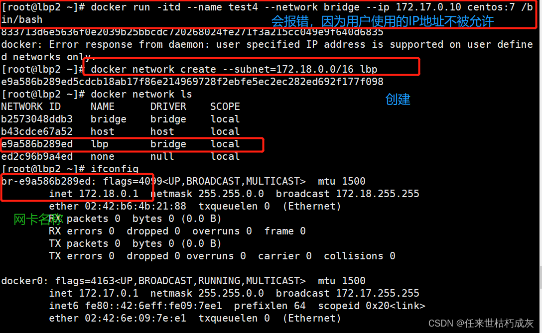 docker run -itd --name test4 --net lcdb --ip 172.18.0.8 centos:7 /bin/bash