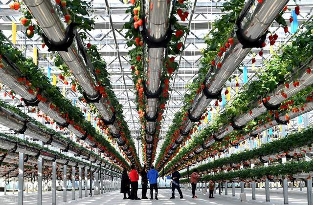 草莓是蔷薇科多年生草本植物,其果实鲜红、外形美观、具有特殊的浓郁芳香、酸甜适口、营养丰富,颇受消费者的青睐。 草莓种植经济价值较高,市场潜力巨大。 近几年,临沂市草莓生产发展迅速,已成为全国重要的草莓产业集聚区,草莓观光采摘园的面积和规模逐年扩大, 种植模式也由平地传统栽培转为立体无土栽培。 立体栽培具有省力、高产、优质、病害少等优点,是草莓栽培未来的趋势。 草莓观光采摘成为我国现代化都市农业的一大亮点, 草莓产业在乡村振兴、助农增收、“一带一路”中发挥着越来越重要的作用。