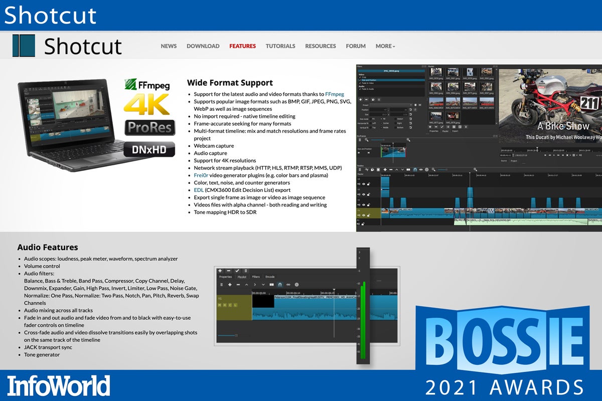 Shotcut is a cross-platform tool for video editing that is giving Davinci Resolve a run for its money. Shotcut allows one to do all of the standard corrections on audio and video tracks along with applying effects and layering. Shotcut has a really vibrant community, and offers plenty of how-to videos and guidance to help novices and advanced videographers alike. It runs on Mac, Linux, BSD, and Windows — and despite being cross-platform, the interface is snappy and relatively simple to use compared to similar tools.