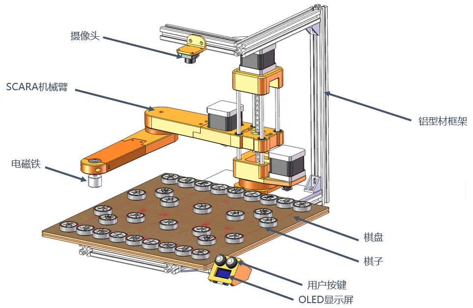 基于EAIDK-610的中国象棋机器人对弈系统3D模型,使用SolidWorks2016创建,非标件(橙色零部件)使用3D打印制作。