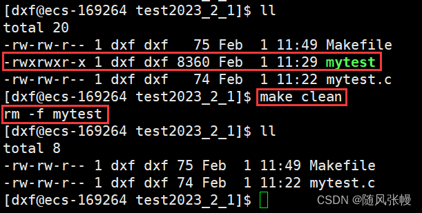 此时如果我们想清理make出的可执行程序,使用make clean命令即可,如下图所示。