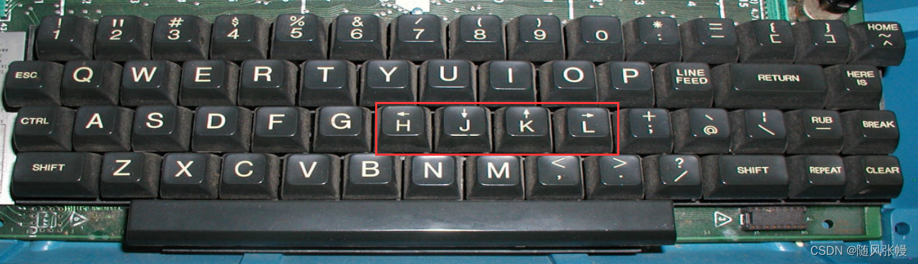 建议熟悉hjkl移动光标而不是上下左右键移动光标,因为后面一些组合命令是不支持上下左右键的。选用hjkl移动光标是因为老式键盘的上下左右是复用在这四个键里的,如下图所示。