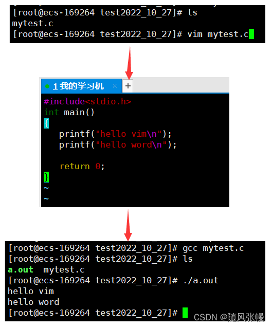 使用vim编辑器写代码,并进行编译运行,如下图所示