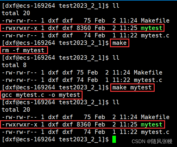 4.make指令默认只会形成第一个目标文件,执行该依赖关系的依赖方法,如下图一所示,如果将mytest目标文件的依赖关系和依赖方法与clean伪目标文件的依赖关系和依赖方法进行交换,那么我们使用make指令执行的就是clean伪目标文件依赖关系的依赖方法,使用make mytest才会执行mytest目标文件依赖关系的依赖方法,如下图二所示。
