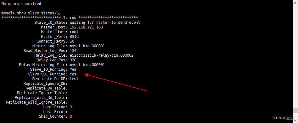 注:必须 Slave_IO_Running: Yes