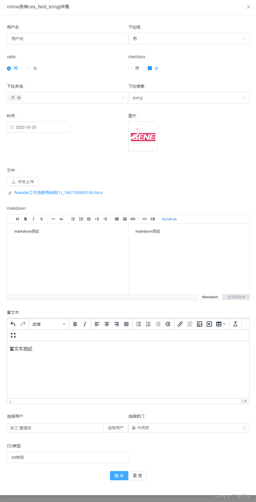 这里使用了大量自己定义的前端各个字段类型的组件,等做好代码发布后会正式公布,主要是以下组件,以后还会根据需要扩充