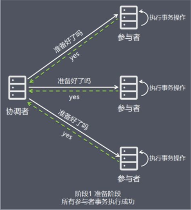 情况 1:阶段 1 所有参与者均反馈 yes,参与者预执行事务:
