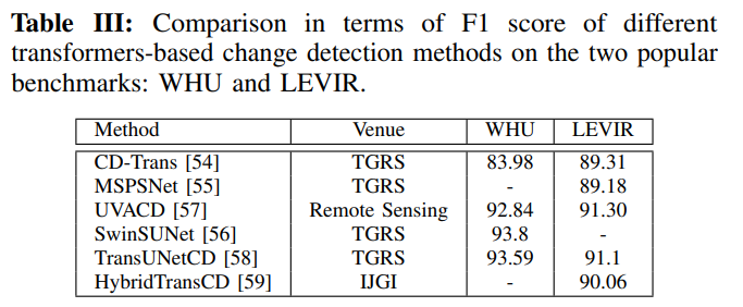 为了总结变形器在VHR图像中的回顾,我们在表5中对文献中的不同技术进行了全面的概述。(具体论文链接见github)