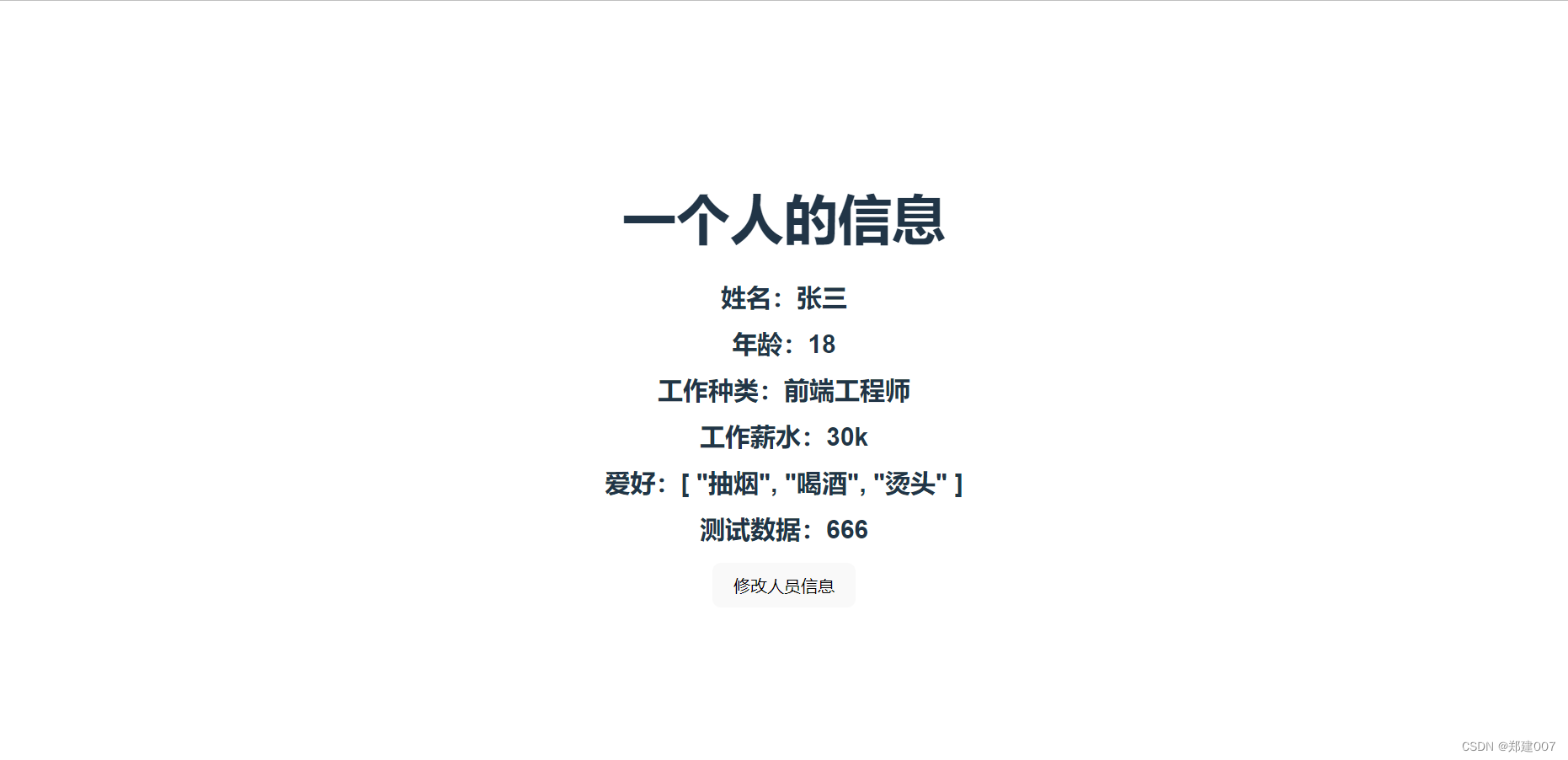 - <h1>一个人的信息h1>